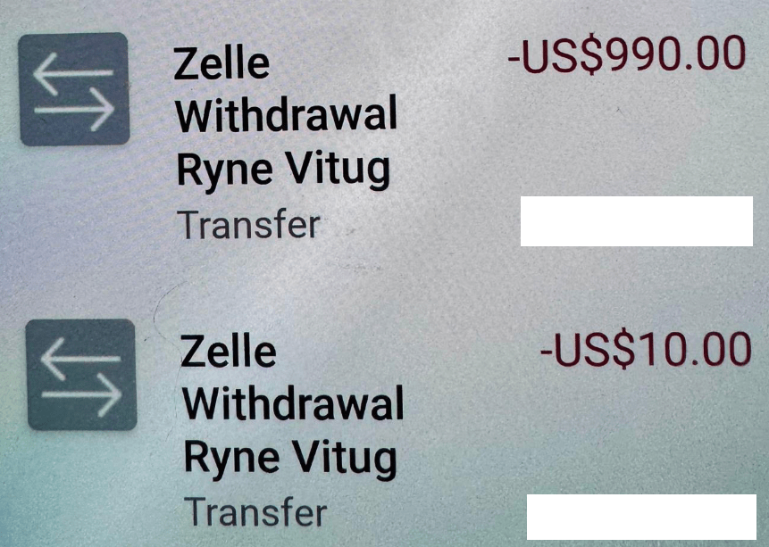 1. How much money have you lost? I sent Ryne $3,000 on March 1, 2024 Via Zelle. I later sent him $900.00 via Zelle for First class seats for our airfare. So a total of $3,900.
