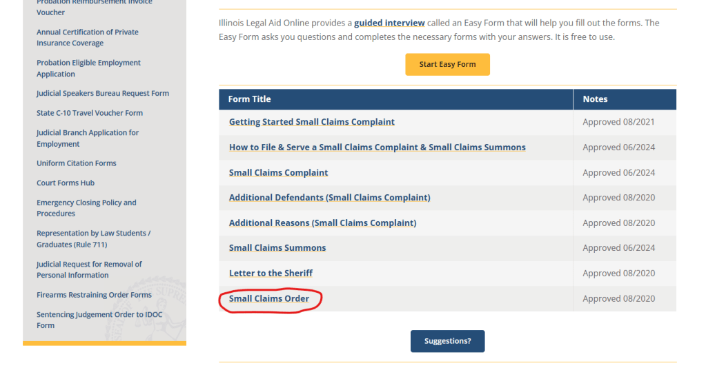 Step 2. Scroll down and click ‘Small Claims Complaint’