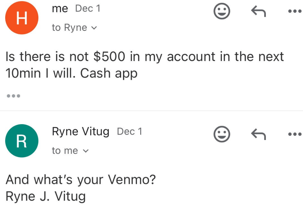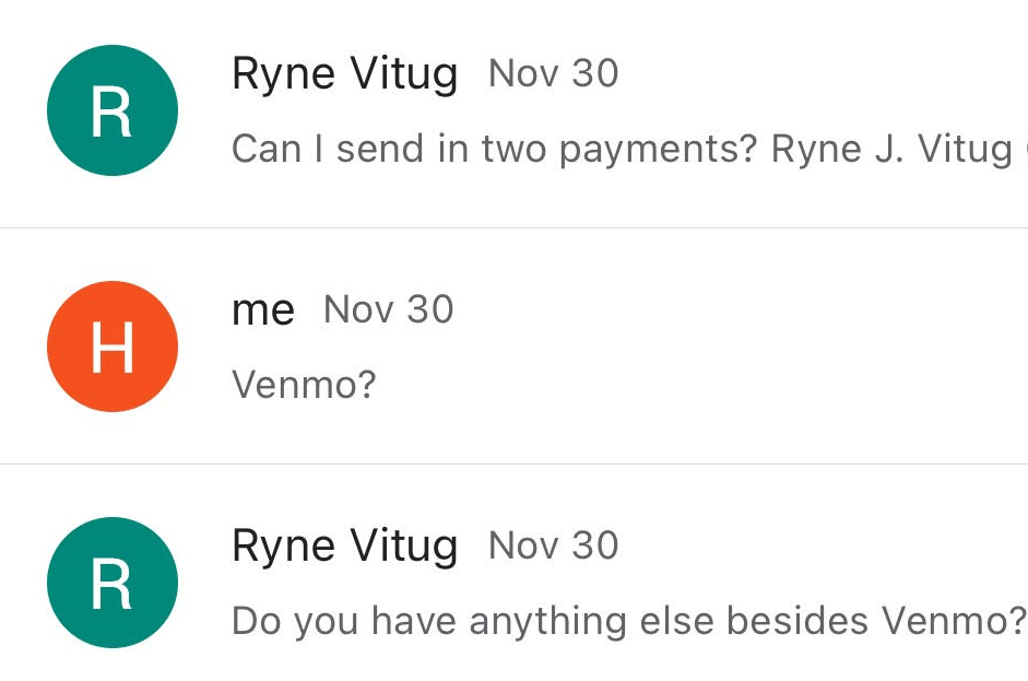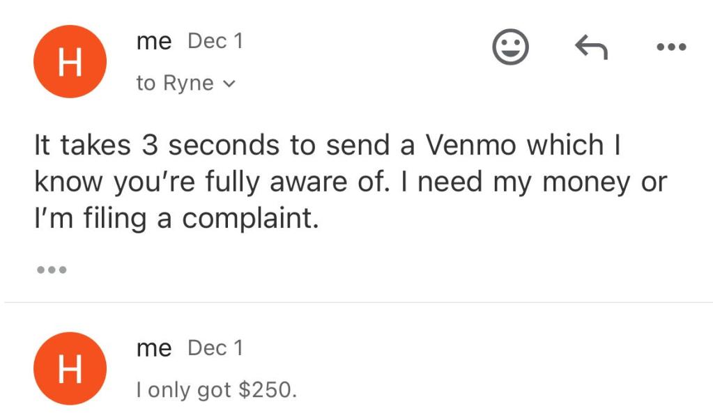 Probably because Ryne neglects to tell you, his Venmo is restricted as they know it was involved in fraud and he owes Venmo -$2,265.