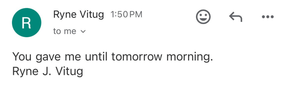 Classic Ryne. At least now we all know why “this deal ends tonight”.