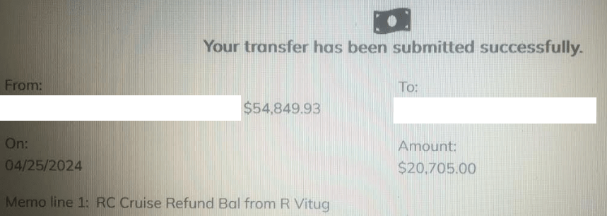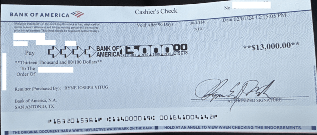 Here’s the scoop, In the earlier part of 2024, the jig was up. Ryne was at the casinos Yolo’ing away money from other victims, just like yourself. He began to default on trips and there wasn’t enough new money coming in to cover the losses. Panic set in as angry victims began to reach out to not only Ryne, but the rest of the family (many of these victims were friends of the family). With the looming threat of lawsuits and sure-to-follow loss of career and jail time for Ryne, the adults in the family came together and decided that they would sell Grandma Yolanda’s house and use that money to pay off the victims, and I got the receipts to prove it. $61,812.50 to be exact – see below.