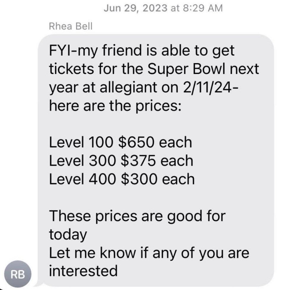 She’s told me about Ryne and his excessive gambling habits.  How most of his promises of NFL & NHL games were simply the lavish “comps” he receives as a “high roller” that he was then selling for further financial gain.  When I first bought in to the scam, he did not want anything directly connected to him and I was asked to pay Max Mendelson (@Max-Mendelson on Venmo).  I have no idea who this was and felt it was always a bit sketchy from the beginning, but I bought into it.  I bought [redacted] for $[redacted] from Ryne, paid Max and was eventually reimbursed by personal check from [Rhea].